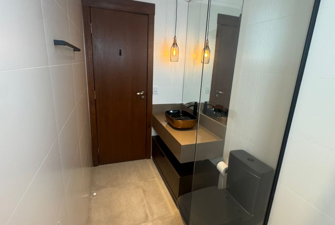 – Todos os móveis fixos planejados, inclusive banheiros completos;