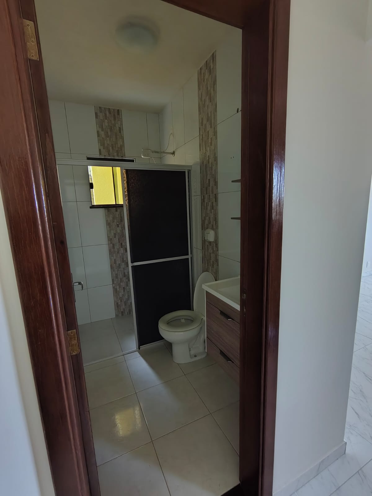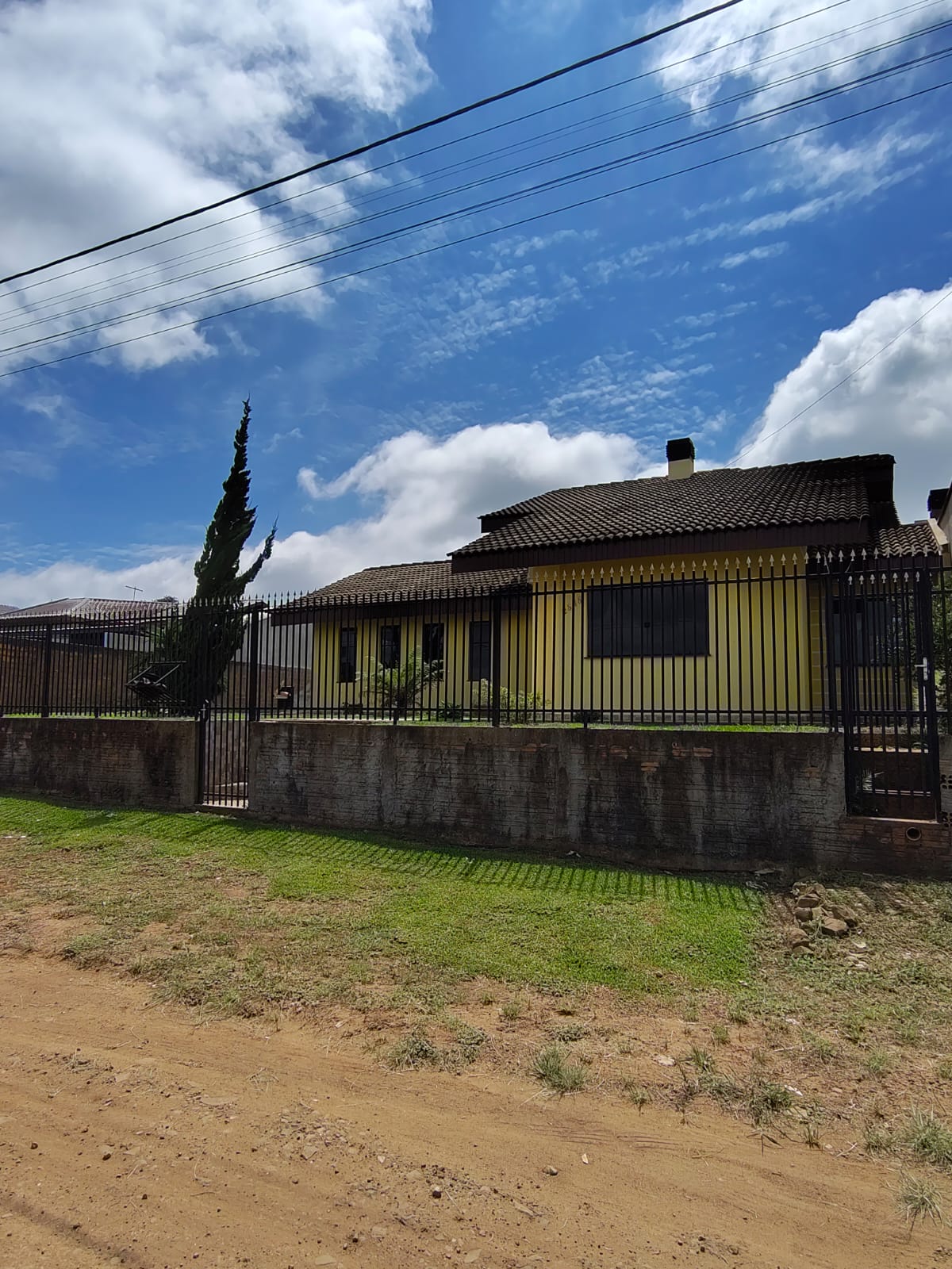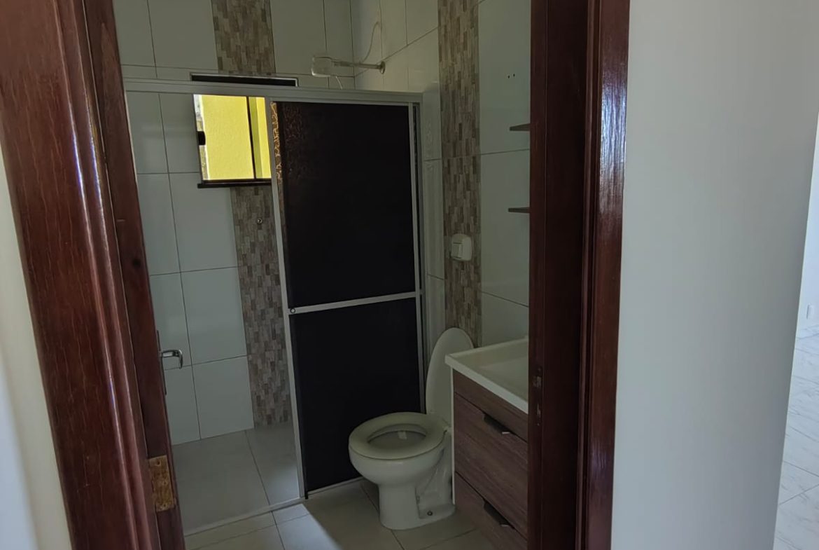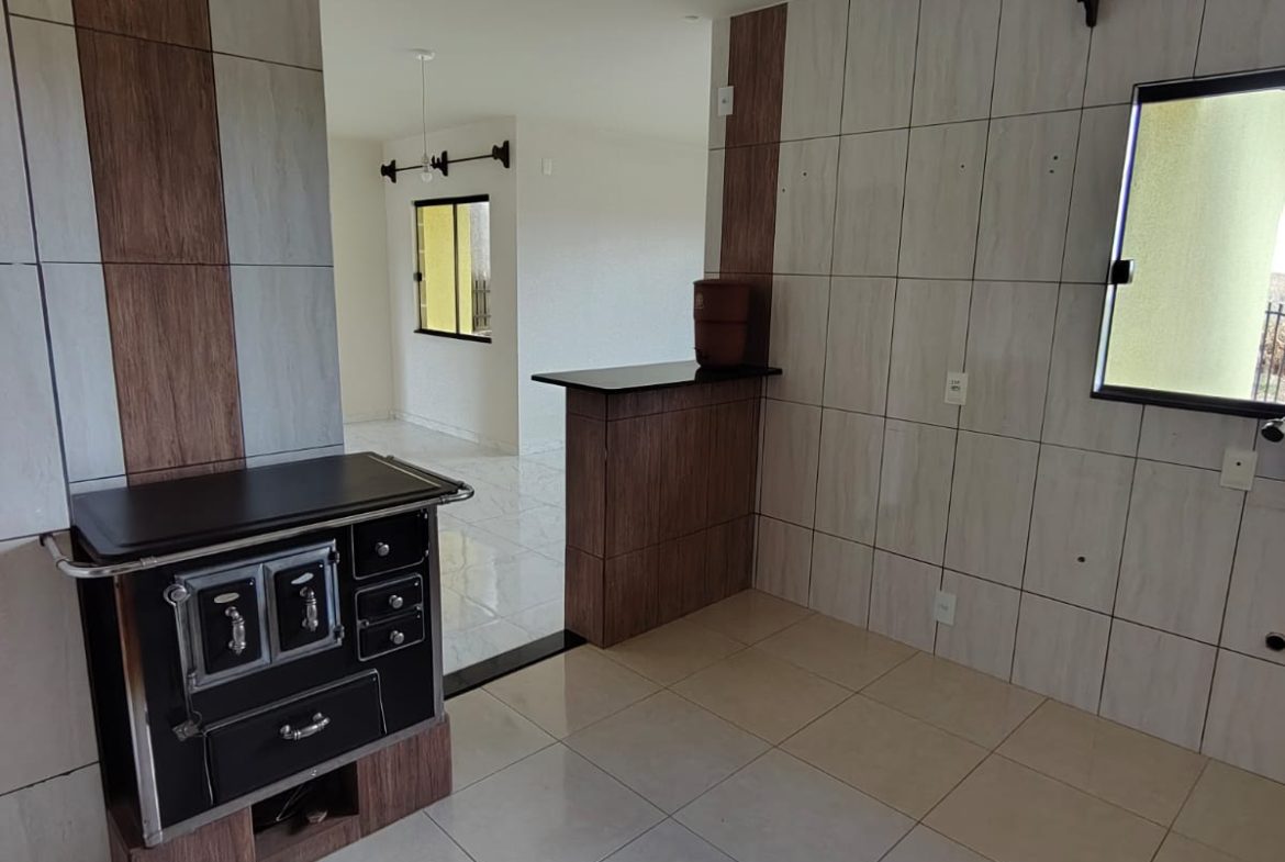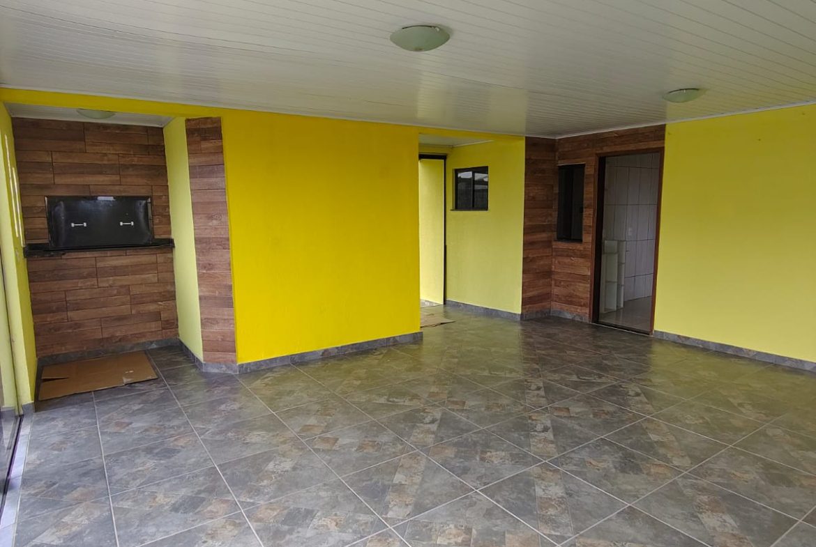 Residência de alvenaria com área construída 134,00m², contendo 02 quartos, mais uma suíte, sala, copa, cozinha, banheiro social, salão de festas com churrasqueira, área de serviço.